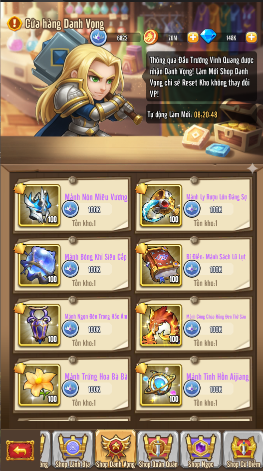 - Danh Vọng được đổi Thưởng trong Shop Danh Vọng
