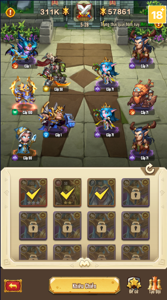 Trong các màn chơi vượt ải, đội hình và cấp độ nhân vật rất quan trọng, nhưng chiến lược mới là yếu tố quyết định một nửa thành công.