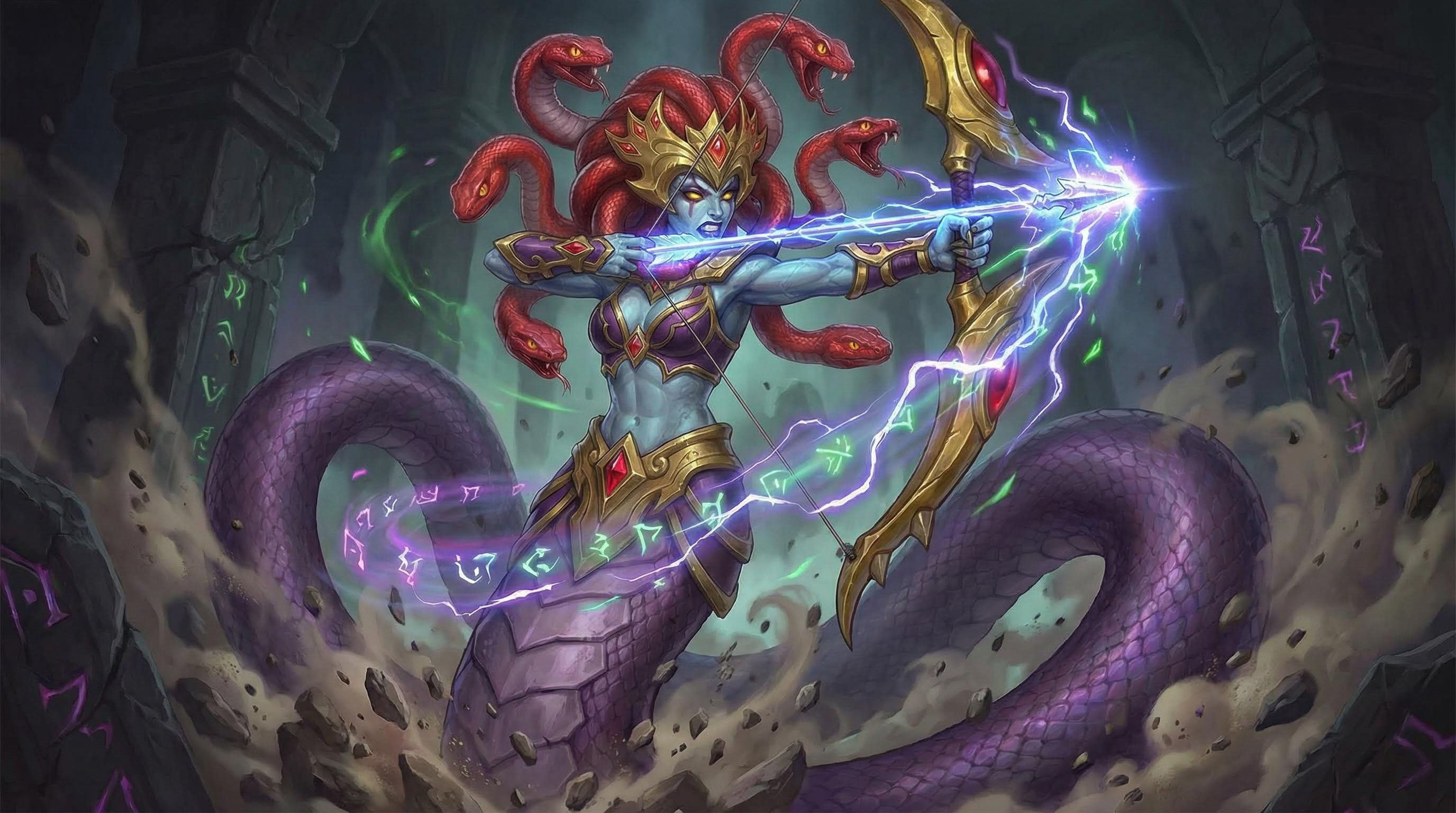 Medusa bắn một mũi tên, gây 250% sát thương tấn công lên kẻ địch khi trúng đích, và có 50% cơ hội tạo ra bẫy độc tại vị trí mục tiêu. Kẻ địch trong bẫy sẽ chịu tối đa bốn lần sát thương, mỗi lần 40% sát thương tấn công, kéo dài 3 giây. Sử dụng kỹ năng này sẽ hồi phục 100 điểm nộ.